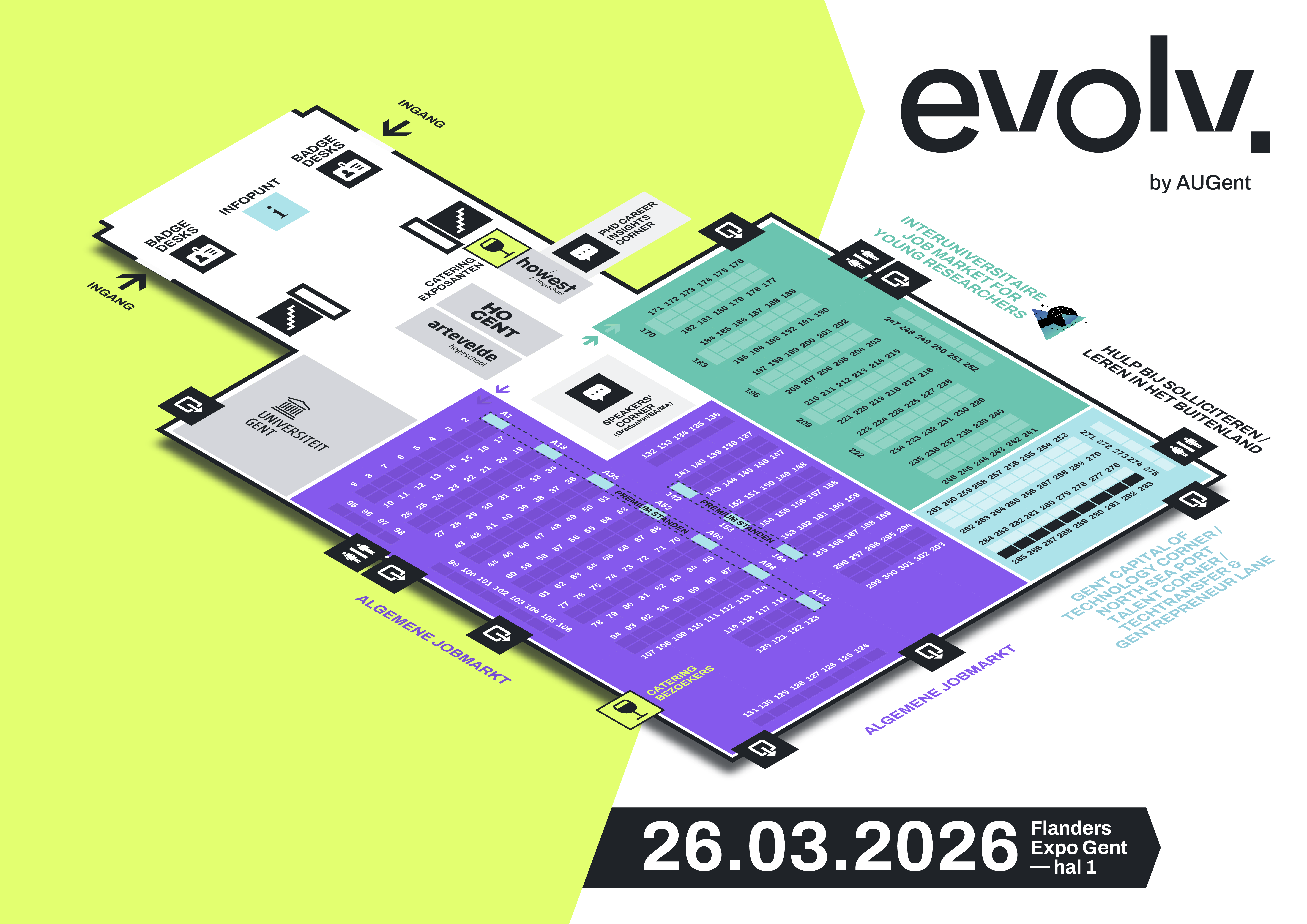 We wensen jullie een succesvolle deelname aan EVOLV. / de interuniversitaire Job Market for Young Researchers / de Ghent Capital of Technology corner / de North Sea Port Talent corner / de TechTransfer & Gentrepreneur lane